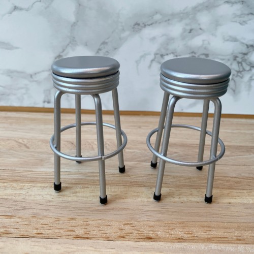 Chrome stool with a brown wooden seat.