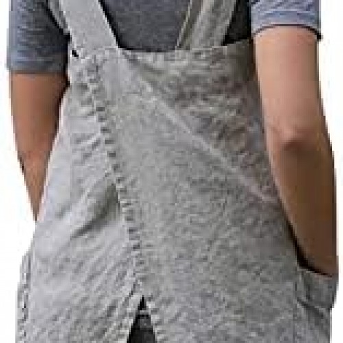 YESDOOD Apron for Womens Cotton Linen Apron Cross Back with Pockets Pinafore Dress for Baking Cooking